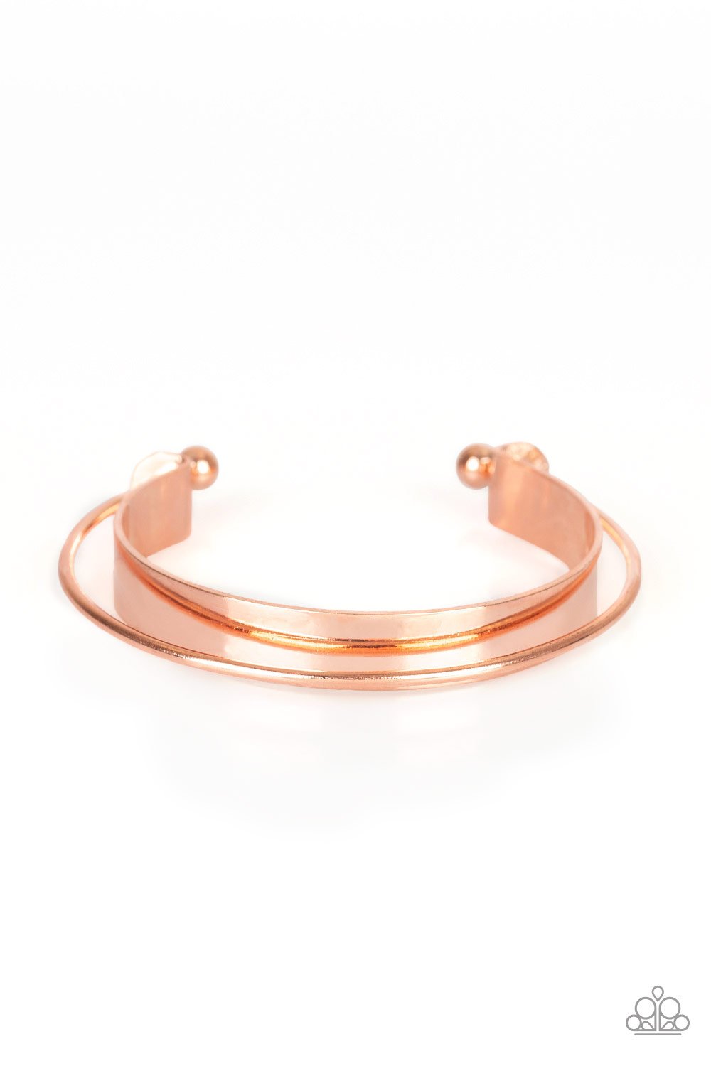 Featuring shiny copper beaded fittings, a dainty shiny copper bar arcs over a flat shiny copper cuff and is fitted in place for a sleek, modern look.