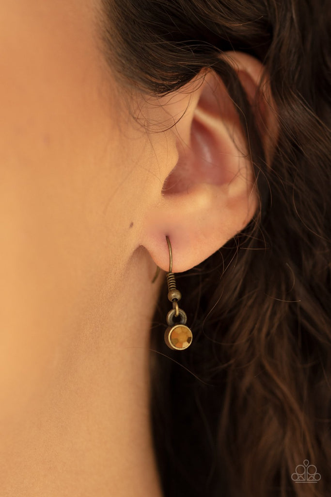 Encrusted in sections of dainty aurum rhinestones, three interlinked brass infinity charms attach to an oversized brass chain below the collar for a bold industrial style. Features an adjustable clasp closure.