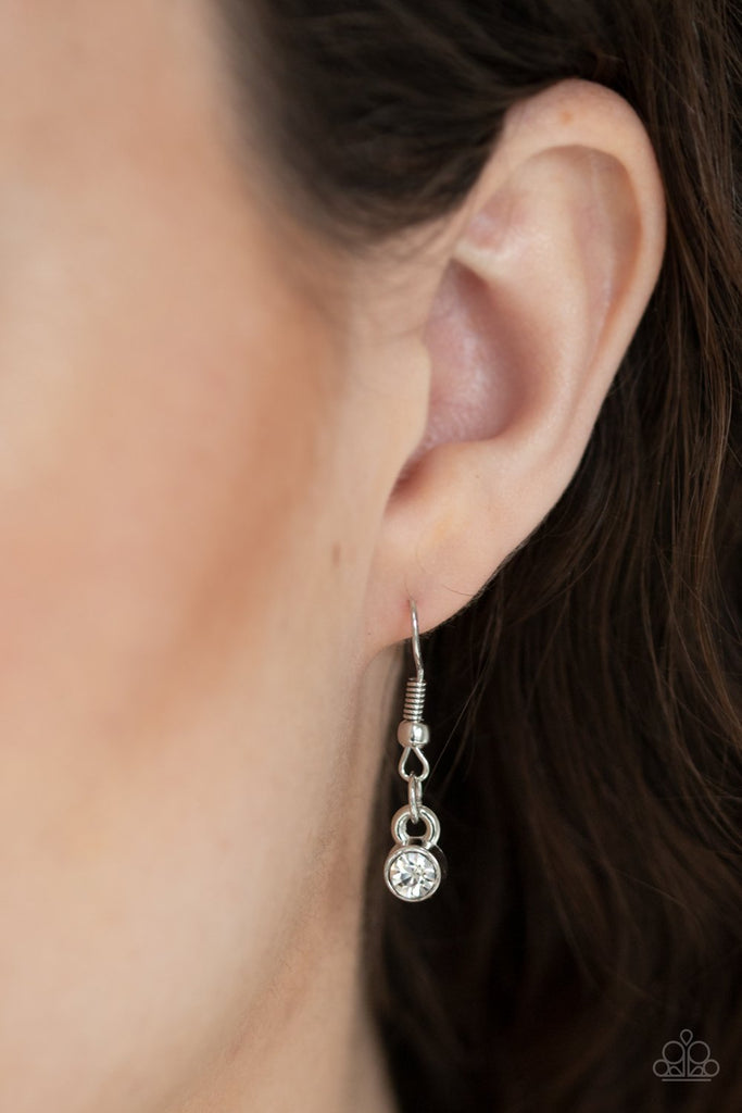 Encrusted in sections of glittery white rhinestones, two glistening silver hearts delicately join at the bottom of a lengthened silver chain for a charming look. Features an adjustable clasp closure.