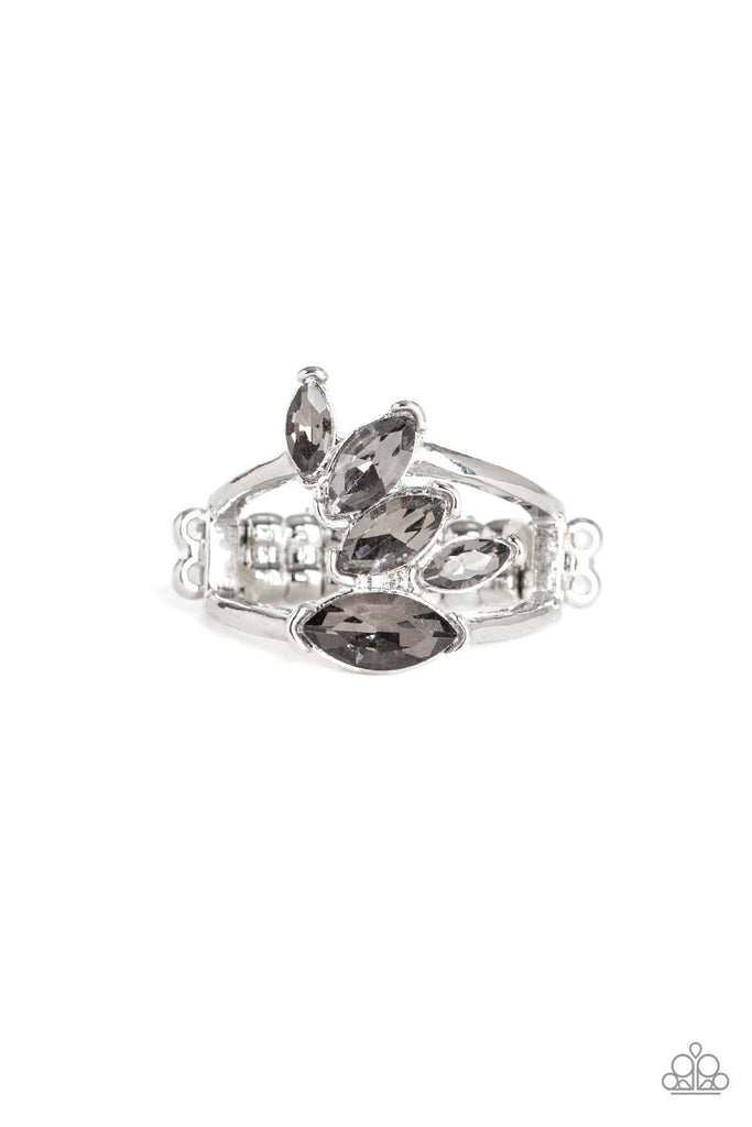 Featuring regal marquise style cuts, a collection of smoky rhinestones fan out across the finger for a stunning fashion. Features a dainty stretchy band for a flexible fit.