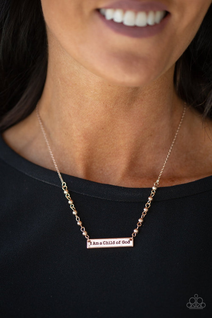 Infused with a rose gold beaded chain, a dainty rose gold frame is stamped in the phrase, "I Am A Child Of God", for an inspirational finish. Features an adjustable clasp closure.