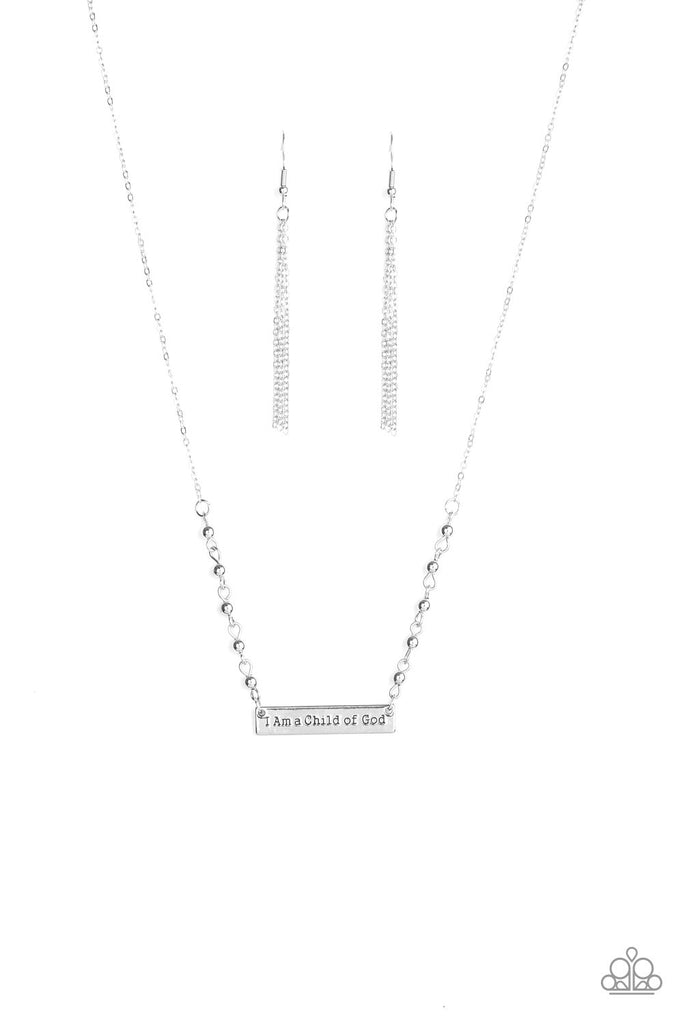 Infused with a silver beaded chain, a dainty silver frame is stamped in the phrase, "I Am A Child Of God", for an inspirational finish. Features an adjustable clasp closure.